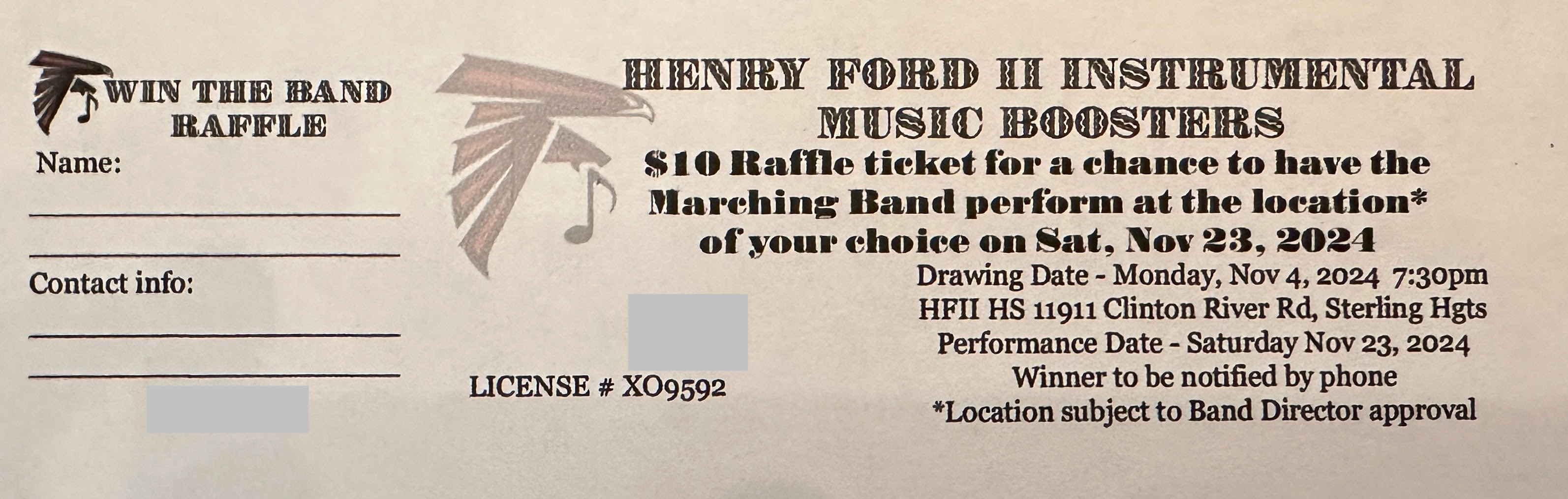 For tickets, please contact Travis Smith HF2IMB@gmail.com or 586 303 7634. Can accept Venmo, Apple Pay, PayPal, cash or check to HFII IMB.