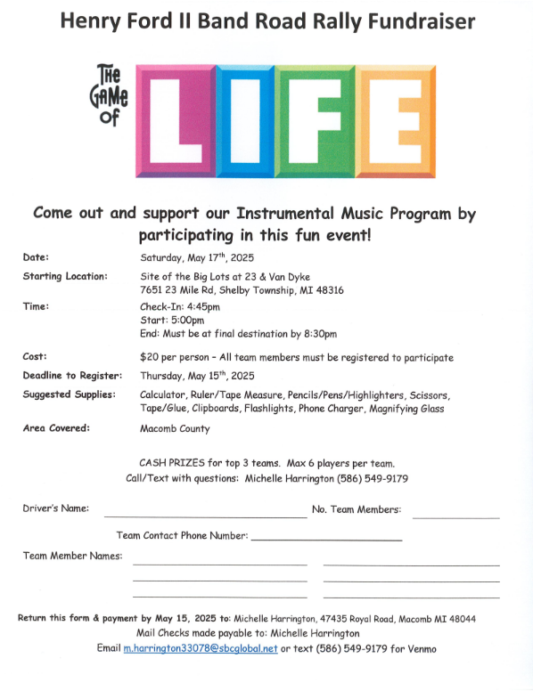 We have some unfortunate news regarding the Henry Ford II Mom 2 Mom sale currently scheduled for Saturday, April 12. While we were hopeful that we would have enough sellers to make it happen, we unfortunately have not received enough registrations to make it worthwhile. For this reason, we regretfully had to make the decision to cancel our sale. We appreciate everyone who submitted a registration, our volunteers and for the continuous support of the HFII band program. Go Band!!
